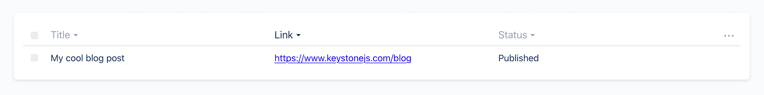 A simple example: if you are writing a link field that's text, but want to render it as a link in the table in the list view, you could add the following config: